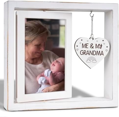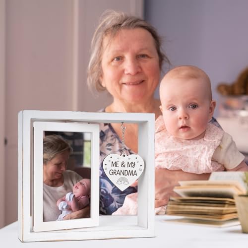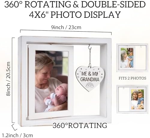 Me and My Grandma Picture Frame,New Grandmother Gifts,Grandma Gifts for New Baby,First Time Grandmother Presents,Room Decor Vintage Style,Baby Gender Neutral Rotating Photo Frame 4x6
