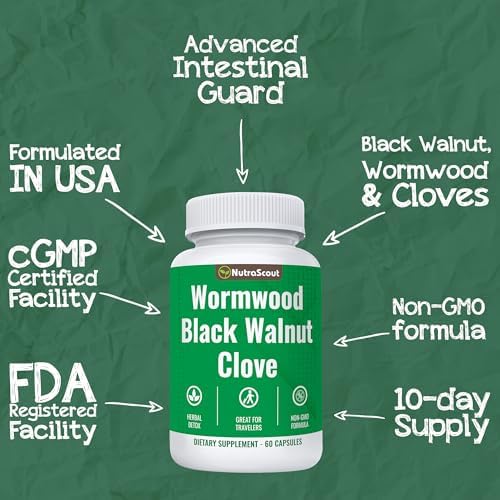 Wormwood, Black Walnut & Clove Complex | Whole Body Detox Cleanse | Lab Tested, USA Made, Non-GMO, Easy to Swallow | 60 Capsules