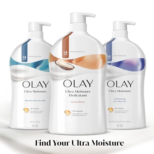 Body Wash for Women, Ultra Moisture, 24hr Moisturizing, Hydrating & Refreshing, B3 Vitamin Complex, Free of Parabens & Phthalates, For All Skin Types, Cocoa Butter Scent, 33 fl oz