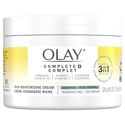 Complete+ Rich Moisturizing Cream Fragrance-Free, 8.5 OZ, 3-in-1 Hydrating Face Cream for Dry Skin with Vitamin B3, Vitamin E, and Ceramides