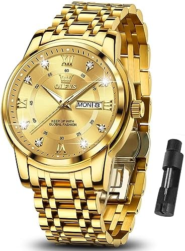 Classic Men Watches with Date,Stainless Steel Man Watch with Date, Bussiness Watches for Men,Luminous Quartz Mens Watches Black/White/Blue/Gold, Waterproof Male Watch with Week