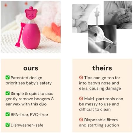 Sponsored Ad - oogiebear: BearPair Baby Nose Cleaner & Ear Wax Removal Tool with Nasal Aspirator - Safe Booger & Earwax Removal for Newborns, Infants, Toddlers - Essential Baby Stuff, Diaper Bag Must-