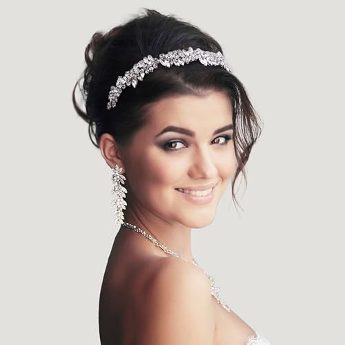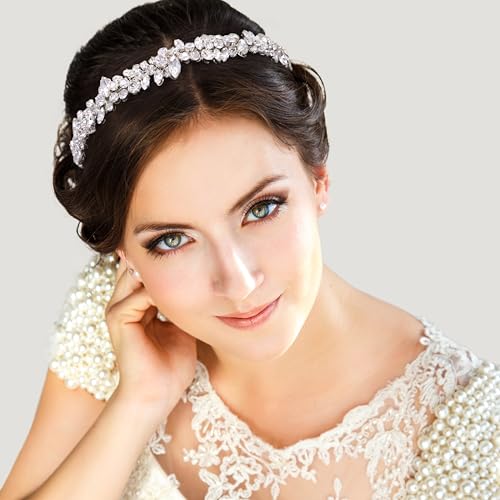 Oriamour Crystal Wedding Headband For Bride Bridal Headpieces For Girls Rhinestone Hairband For Birthday, Party, Prom (Silver)