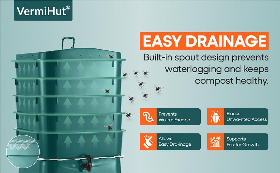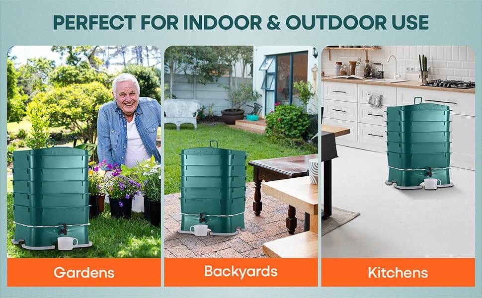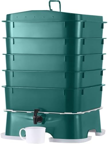 The Original Vermihut ® Plus 5 – Tray Worm Composter -Dark Green,Sustainable Design for Both Indoor & Outdoor, Worm Compost Bin for Vermicomposting Starter, Recycling Food Wastes
