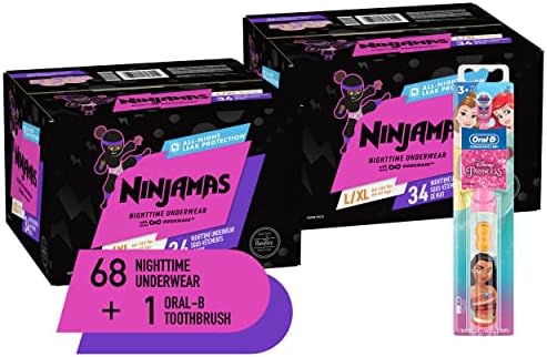 2 Ninjamas + Oral-B Toothbrush, Two Nighttime Training Pants Girls, 34 Count, Size L/XL (64-125 lbs) & Oral-B ProHealth Stages Power Kid's Toothbrush Disney Princess