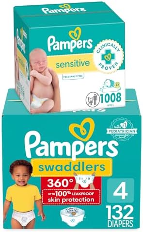Swaddlers 360 Pull-On Diapers, Size 4, 132 Count, with Sensitive Water Based Baby Wipes 12 Flip-Top Packs (1008 Wipes Total)