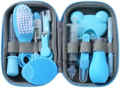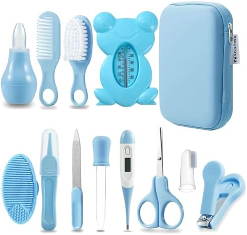 PandaEar Baby Healthcare and Grooming Kit, Baby Safety Set Baby Comb, Brush, Finger Toothbrush, Nail Clippers, Scissors, Nasal Aspirator, Baby Essentials Nursery Care Kit (13-in-1 Blue)