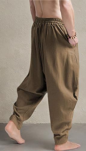 Mens Harem Pants Loose Fit Elastic Waist Drawstring Aladdin Hippie Trousers