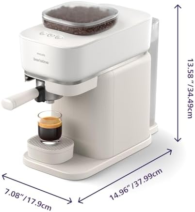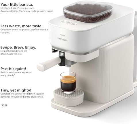 Baristina Espresso Machine - Real espresso, made simple. Compact coffee machine, natural white with white portafilter, 16 bar pump pressure, automatic grinder, Cafe Crema (BAR300/00)