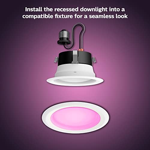 Smart Recessed Lighting 4 Inch - White and Color Ambiance Color-Changing Light - 850 Lumen - Control with Hue App - Compatible with Alexa, Google Assistant and Apple Homekit - 1 Pack