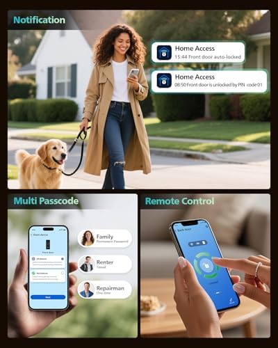 Built-in WiFi Smart Lock, Keyless Entry Door Lock with App, Touchscreen, Indicator Light, Fingerprint Door Lock — Compatible with Alexa & Google, Splash-Proof Design, Includes 8 Batteries