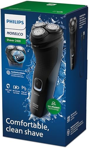 Philips Norelco Shaver 2400 Series, Wet and Dry Electric Shaver, Pop-up Trimmer, P-Cap, Deep Black, Model X3001/90