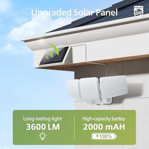3600LM Solar Security Lights, 5000K waterproof Dimmable LED Motion Sensor Outdoor Lights, 3 Adjustable Heads w/16ft Cable, Separate Solar Panel with 3 Modes Solar Flood Lights for Yard, Garage