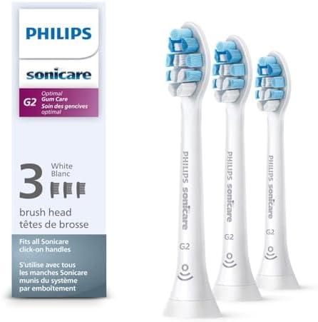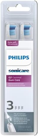 G2 Optimal Gum Care Brush Heads, Genuine Replacement Toothbrush Heads, White, 3 Pack, HX9033/65