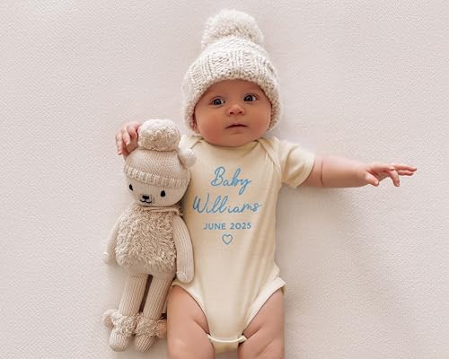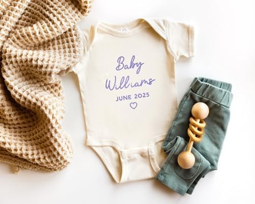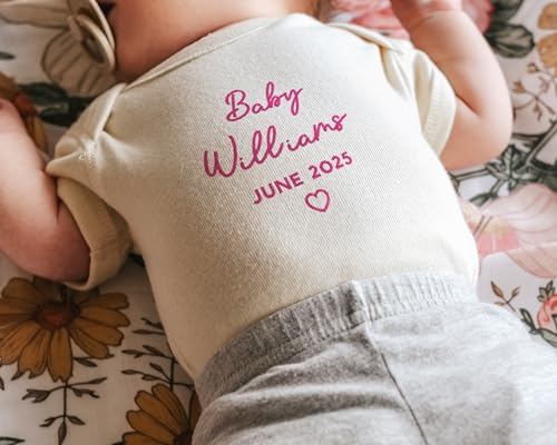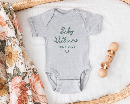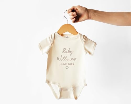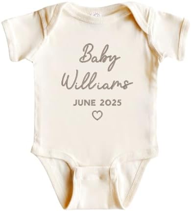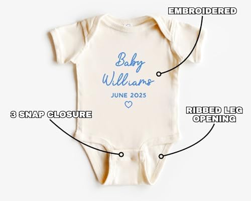Sponsored Ad - WEAR PHYSIQUE Custom Embroidered Pregnancy Announcement Bodysuit, Newborn Gift, Coming Soon Baby Clothing with Name & Date