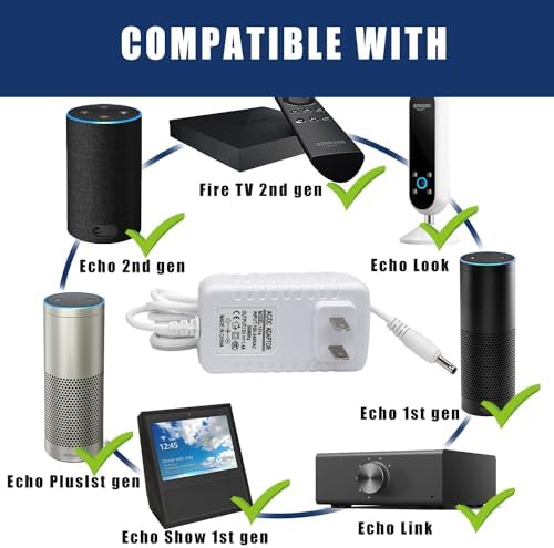 Sponsored Ad - 21W Power Adapter Charger for Echo (1st & 2nd Generation), Echo Show (1st Gen), Echo Plus (1st Gen), Fire TV (2nd Gen), Echo Look, Echo Link, 6.5 Feet Power Cord Replacement, White