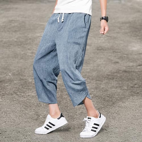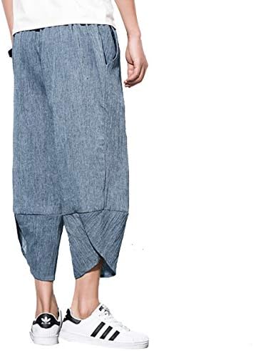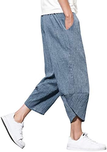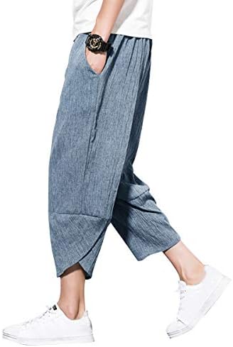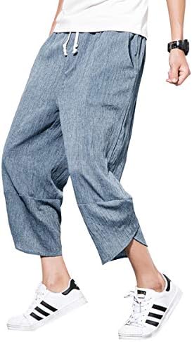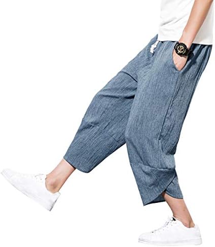 Men's Harem Capri Pants, Wide Leg Mens Capris, Summer Linen Pants