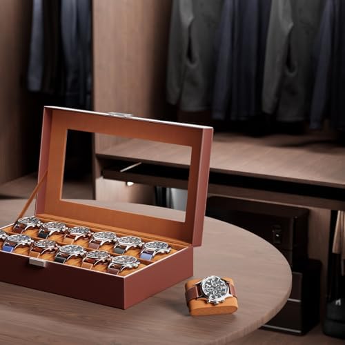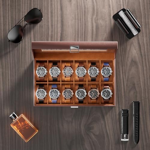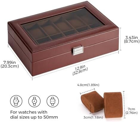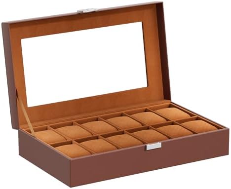 ProCase Watch Box Organizer for Men, 12 Slot Watch Display Case With Glass Lid, PU Leather Watch Storage Mens Watch Case, Watch Holder Organizer for Men Women -12 Slot, Brown
