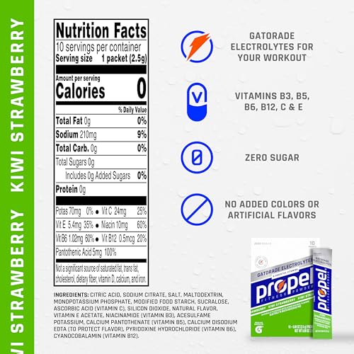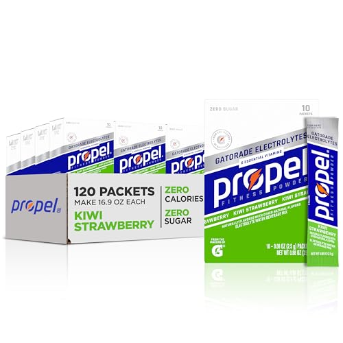 Propel Electrolyte Enhanced Water Drink Mix Powder Packets, Kiwi Strawberry, Zero Calorie & Zero Sugar Hydration with Electrolytes and Vitamins C & E (120 Packets)