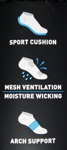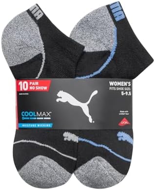Women's Sports No-Show Socks, 5-9.5 Shoe Size, Black, 10 Pairs