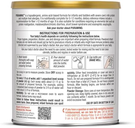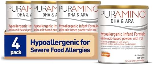 PurAmino Hypoallergenic Infant Drink, for Severe Food Allergies, Omega-3 DHA, Iron, Immune Support, Powder Can, 14.1 Oz (4 Count)
