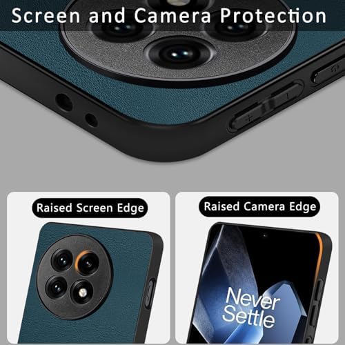Case for OnePlus 13R, Anti-Fingerprint Faux Leather Back + Soft TPU Shockproof Durable Edges, Anti-Scratch Slim Fit Camera Protective Cover Phone Case for Oneplus 13R 5G 2025(Blue)