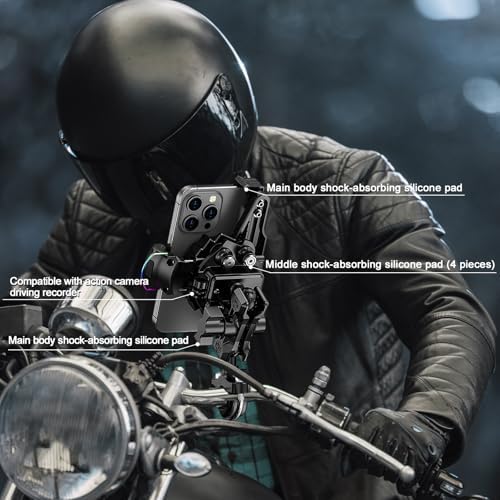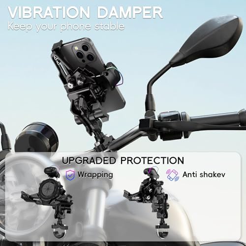 Sponsored Ad - Motorcycle Phone Mount Holder,Bicycle Phone Mount,Metal Extension Arm-Dual Vibration Dampener,Suitable for Handlebar and Rearview Mirror Installation,Clamp for 4.7-7.2" Smartphone