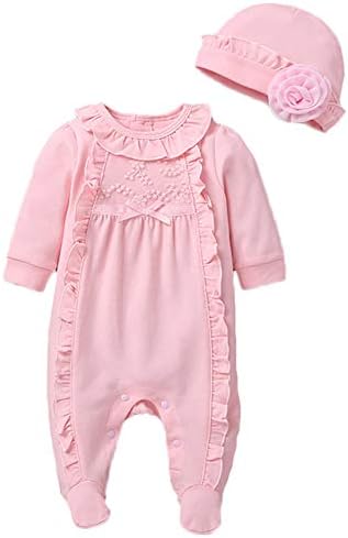 Sponsored Ad - Infant Baby Girl Ruffled Cotton Footies Footed Overall Romper with Hat Toddler Baby Footed Jumpsuit