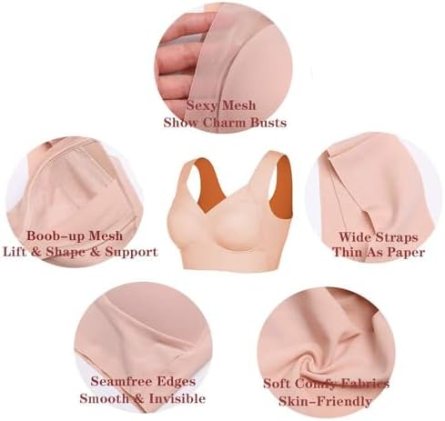 Sponsored Ad - WOWENY Seamless Wirefree Bras for Women Comfy Mesh Soft Padded Back Smoothing Bra