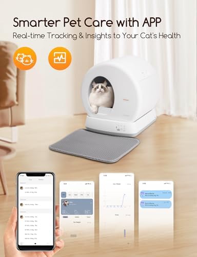 Sponsored Ad - MeoWant Self-Cleaning Cat Litter Box, Integrated Safety Protection Automatic Cat Litter Box for Multi Cats, Extra Large/Odor Removal/APP Control Smart Cat Litter Box with Mat & Liner