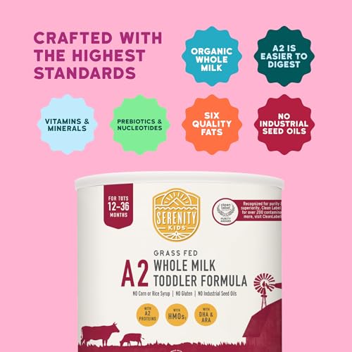 12-36 Months A2 Whole Milk Toddler Formula Powder - Organic Grass-Fed Milk Powder with Prebiotics & DHA & ARA for Brain & Eye Support - Clean Label Purity Award Certified - 21 Oz, 1 Pack