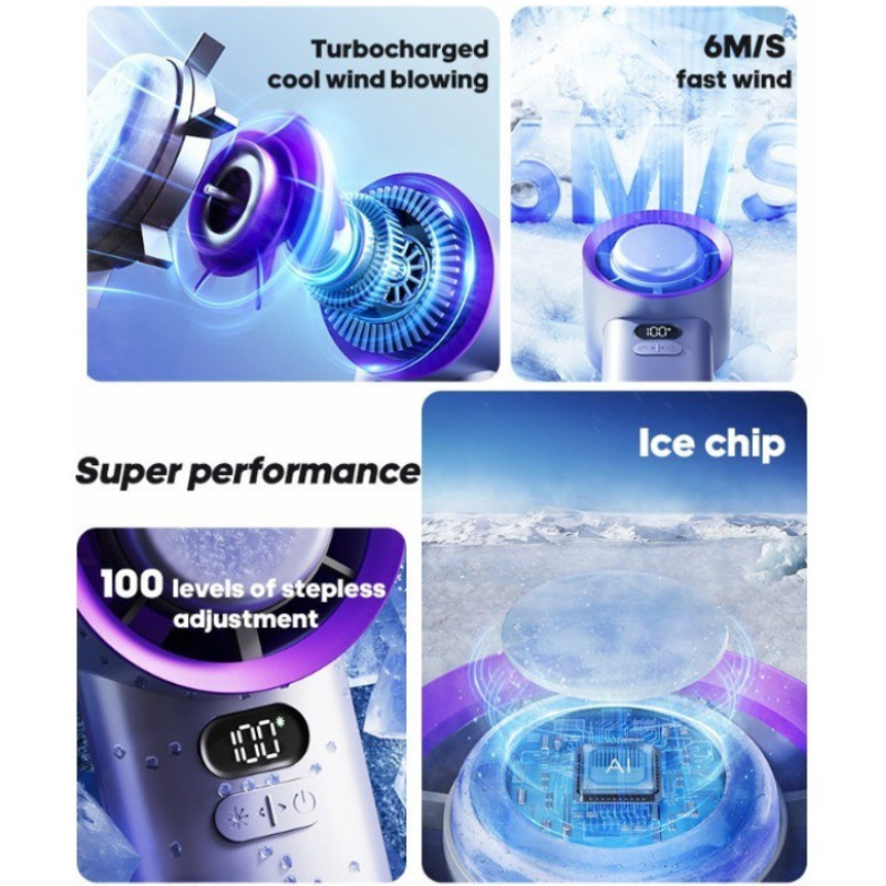 SG Local- Mini Handheld Outdoor High Speed Air Cooling Fan 100-Gear Wind Speed Digital Display Adjustable Turbo Fan