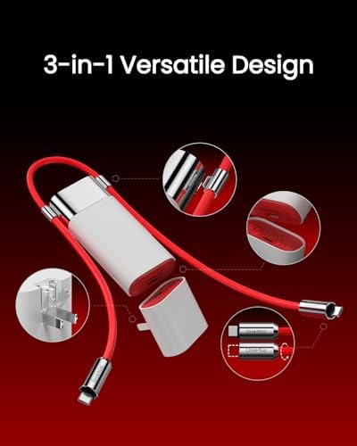 3 in 1 Power Bank PD 40W Fast Charging 10000mAh Portable Charger with Red Cable SUPERVOOC 55W 36Wh Battery Pack for iPhone 16/ OnePlus 12/11/Open/Nord Series