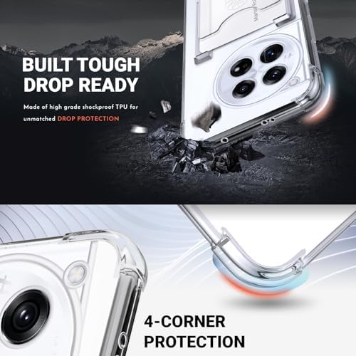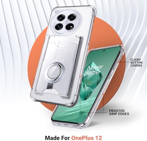 Sponsored Ad - for OnePlus 12 Case, 1+12 Case, Minimalist Wallet Case with Card Holder & Ring Kickstand/Stand, [Drop Protection] Slim Protective Cover - Clear