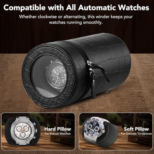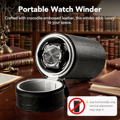 Single Watch Winder for Automatic Watches – Silent Motor, Battery and AC Adapter Powered, 2 Rotating Modes, Portable Watch Winders with Acrylic Window – Automatic Watch Winder Box for Men & Women