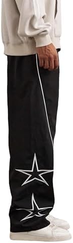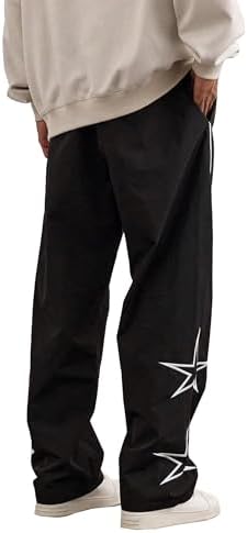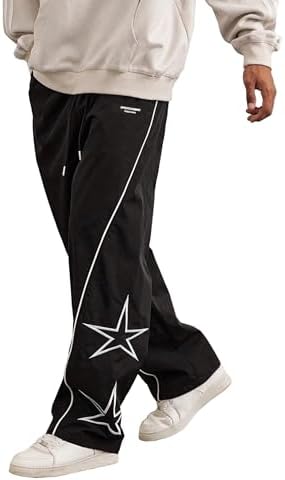 SOFIA'S CHOICE Men's Baggy Sweatpants Y2k Striped Star Embroidery Wide Leg Dance Pants with Pocket Streetwear