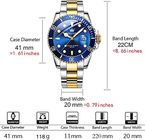 Watches for Men with Date Luxury Big Face Waterproof Mens Wristwatch Analog Dress Two Tone Stainless Steel Man Watch Luminous Relojes De Hombre Calendar(Green/Blue/Black Dial