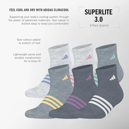 Unisex Kid's Quarter Ankle Socks for Boys and Girls Youth (6-Pack) Superlite Breathable and Lightweight