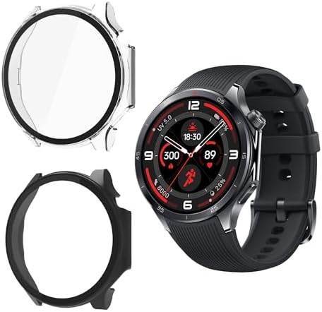 for Oneplus Watch 3 Screen Protector case, Rigid PC Shell Membrane in one Piece, Scratch-Proof and Shock-Proof,Ultra-Thin-Clear and Black