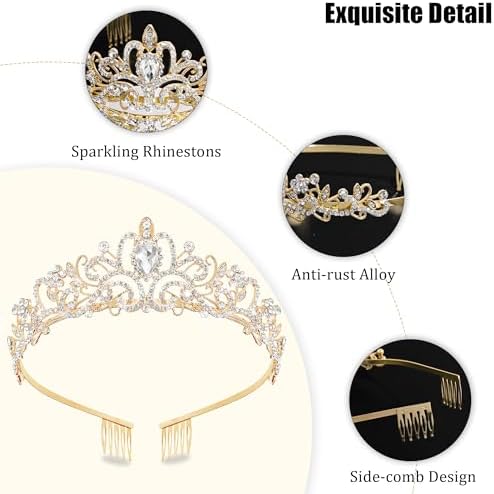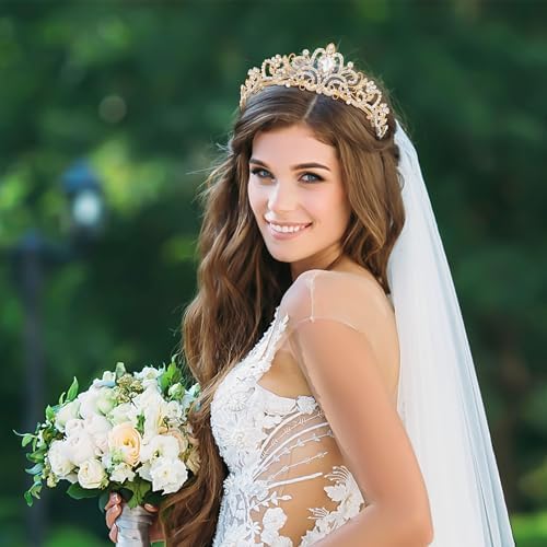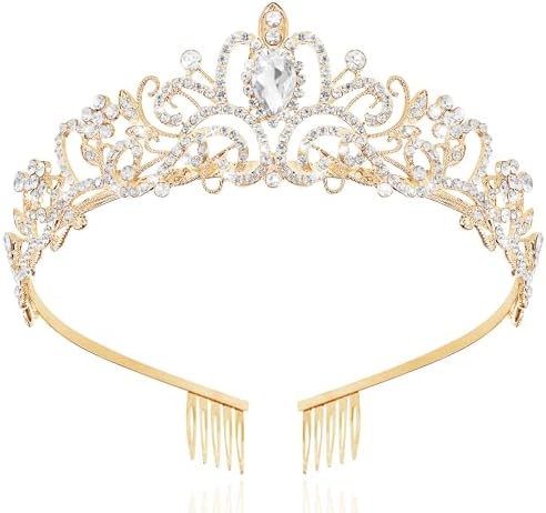 TAROSE Crowns for Women and Girls, Queen Crystal Gold Silver Tiaras with White Rhinestone and Combs, Goddess Crown for Wedding Bride Birthday Princess Bridal Shower Hair Accessories for Women
