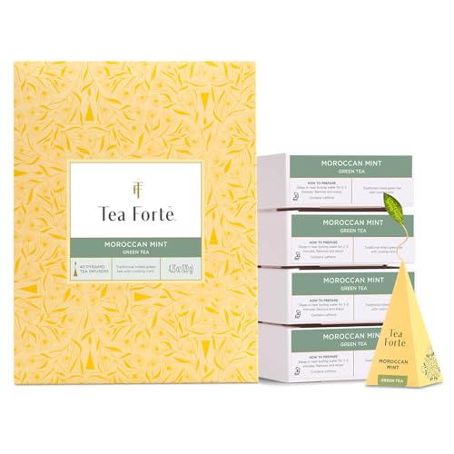 Tea Forte Moroccan Mint Premium Caffeinated Green Tea Blend Event Box, Bulk Pack 40 Count, 10 per tray Individually Wrapped Handcrafted Pyramid Infusers