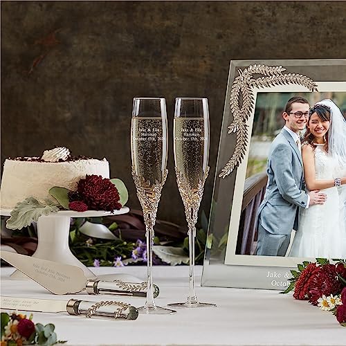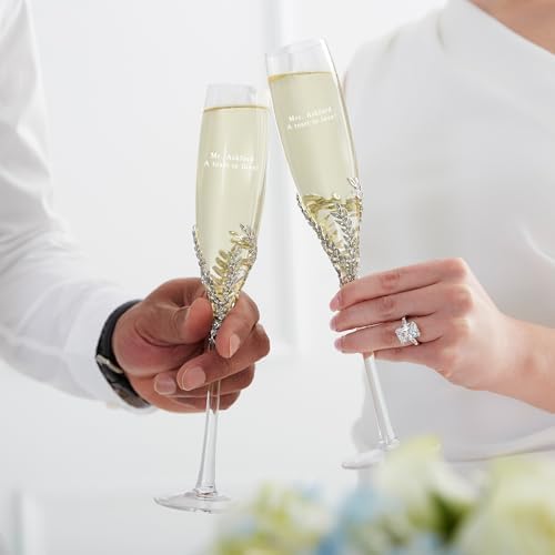 Sponsored Ad - THINGS REMEMBERED Engraved Personalized Athena Wedding Engagement Pavé Champagne Flutes, Set of 2, Gift Box Included (Free Customization)