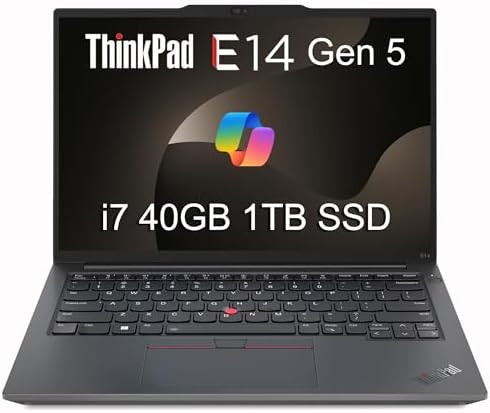 Lenovo ThinkPad E14 Gen 5 Business Laptop (14" FHD+ Anti-glare, Intel 10-Core i7-1355U, 40GB RAM, 1TB SSD) Backlit, Fingerprint, Fast Charge, 1080p RGB Webcam, Wi-Fi 6, Win 11 Pro w/ Copilot