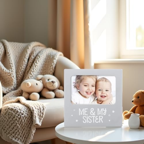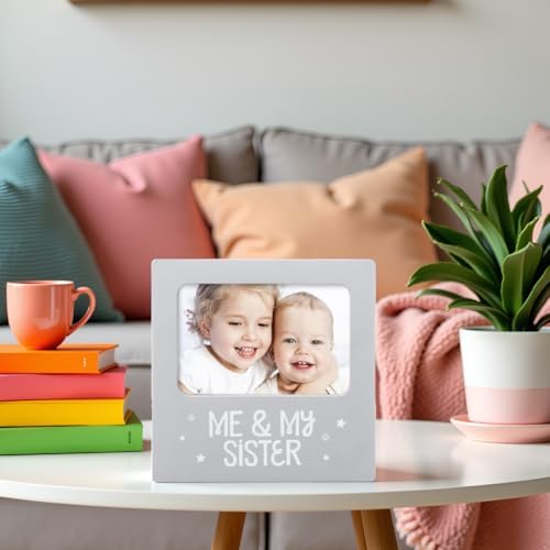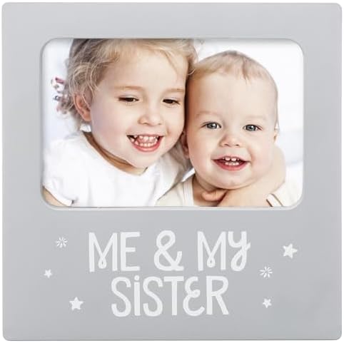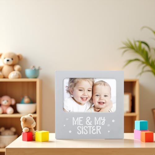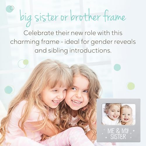 tiny ideas Me and My Sister Picture Frame, Baby Keepsake Frame, Sibling Gifts for Sisters, Brothers, Birthday, Shower, Baptism, Newborn Nursery Decor, 4x6 Photo Insert, Gray