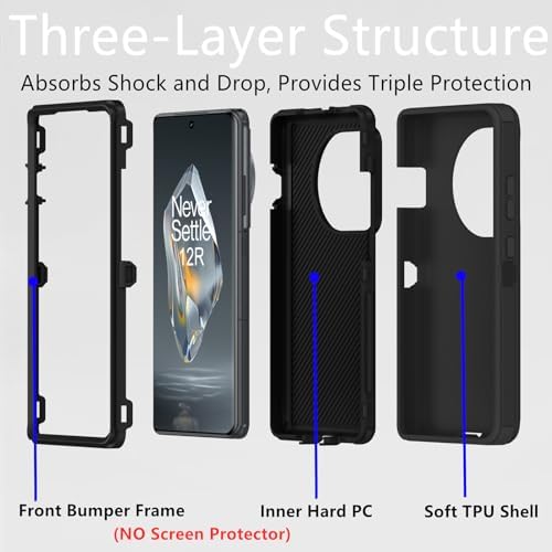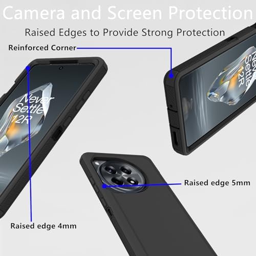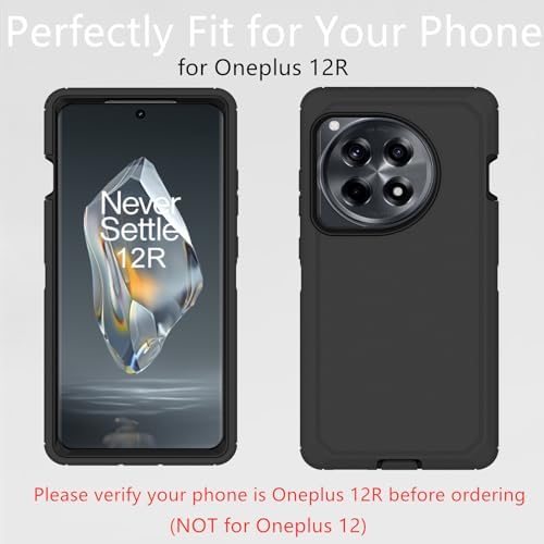 for Oneplus 12R Case, Heavy Duty Defender Case Dustproof Shockproof Protection 3 in 1 Rugged Cover for Oneplus 12R (2024) - Black