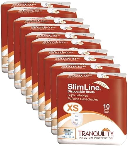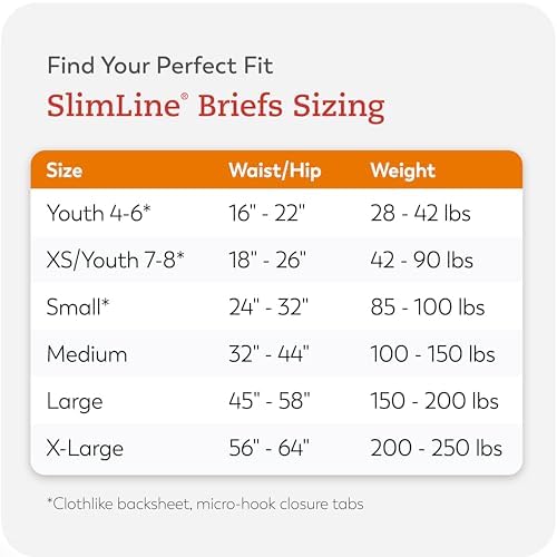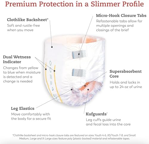 Slimline Original Adult Disposable Brief, Adult X-Small, Incontinence Care with a Slimmer Fit, Peach Mat Core & Kufguard Technology for Max Comfort, Latex-Free, 10.9oz Capacity, 100ct Case