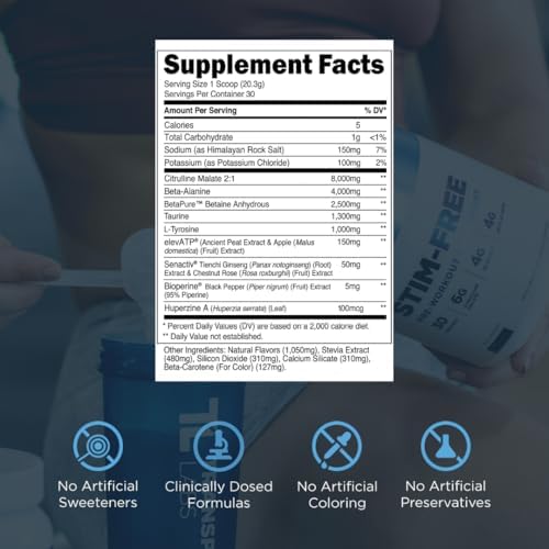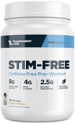 Transparent Labs Stim-Free Pre-Workout - Caffeine & Stim Free Pre Workout Powder Naturally Sweetened for Men and Women with Beta Alanine Powder, Citrulline Malate, & elevATP - 30 Servings, Peach Mango