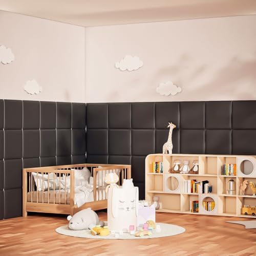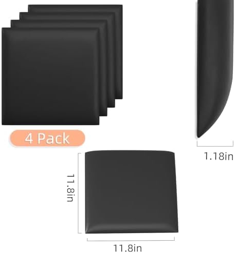 Sponsored Ad - 3D Anti-Collision Wall Padding for Kids, Black Peel and Stick headboard Panels, Self-Adhesive Headboard Panels for Wall, Bedroom/Living Room Upholstered Wall Panel(4 Pack -11.8" x 11.8"