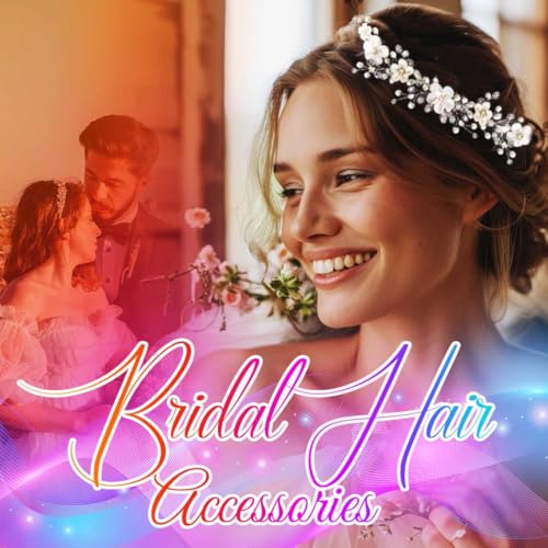Unicra Flower Bride Wedding Hair Vine Pearl Bridal Hair Piece Leaf Hair Accessories Rhinestone Headband for Women and Girls (9inches) (Silver)