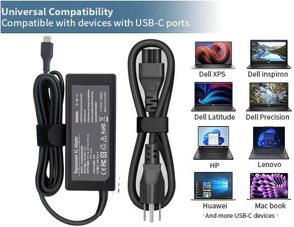 Sponsored Ad - Universal 65W USB C Laptop Charger Type C Chromebook Charger Compatible with HP Laptop/Envy; Dell Latitude; Lenovo ThinkPad/Yoga and More Chromebook Type C Power Cord Supply Computer Fa
